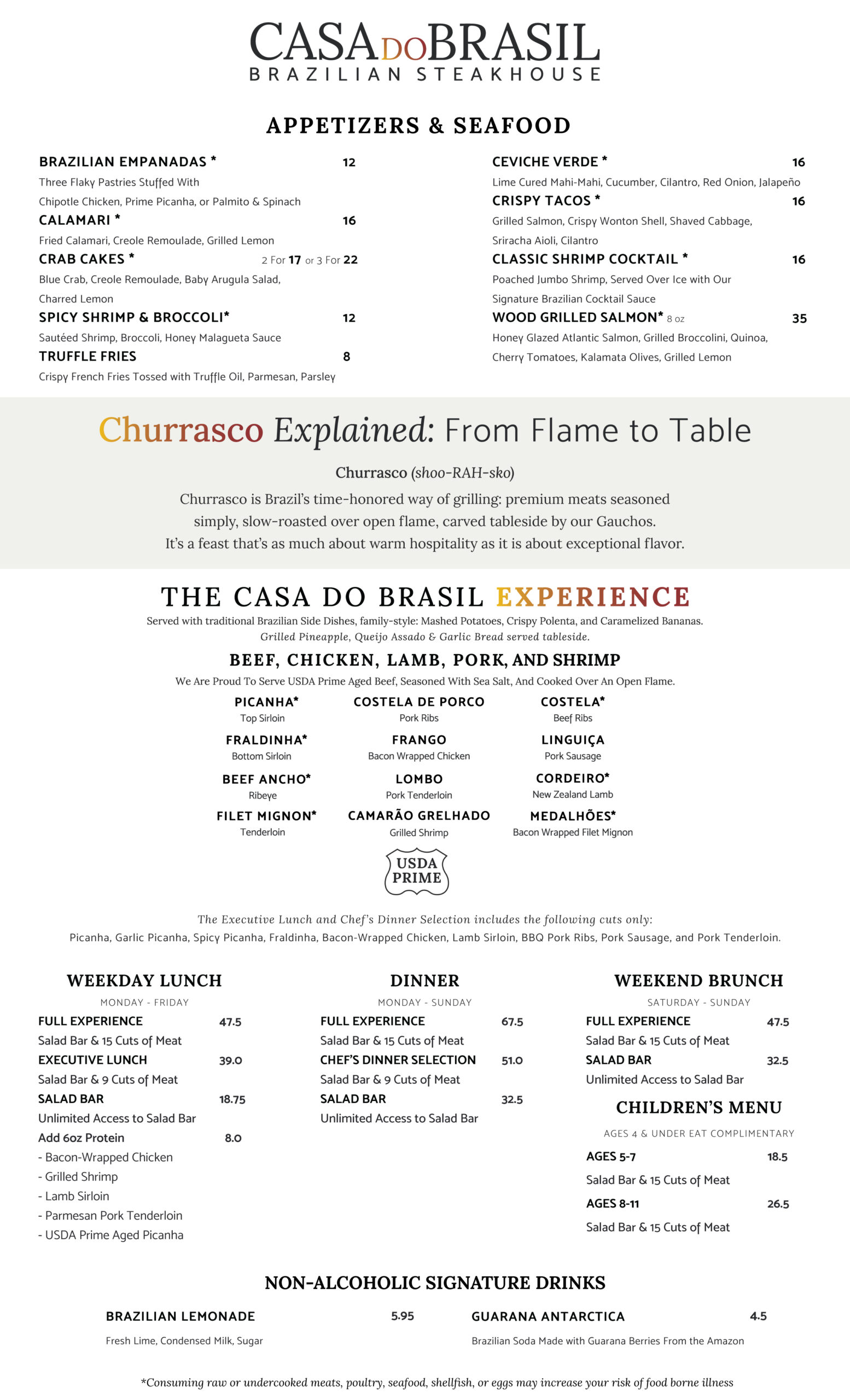 Served tableside by our Gaucho Chef's, indulge in USDA-Prime Aged beef, chicken, lamb, pork, and shrimp.