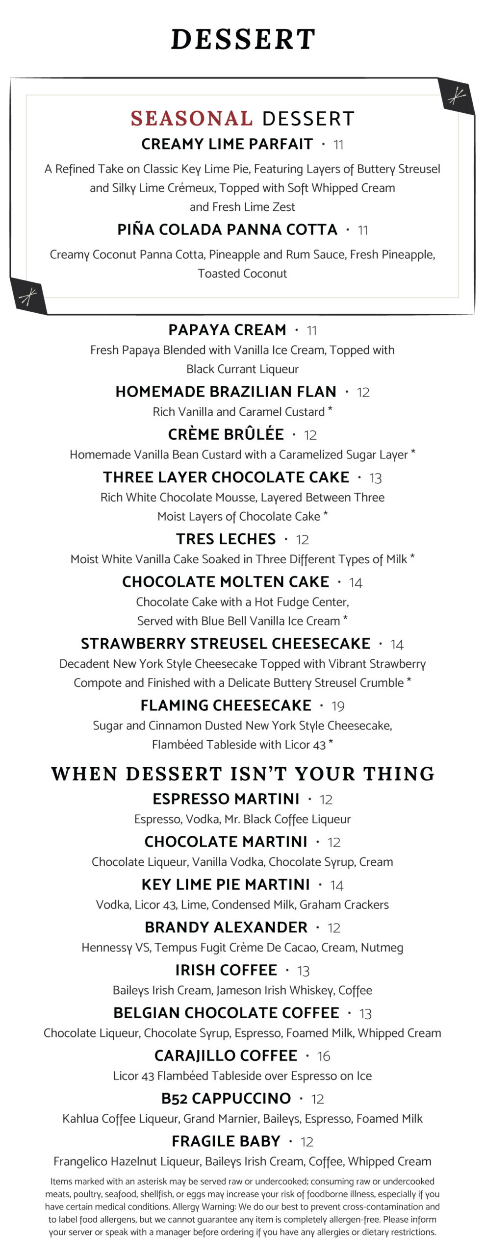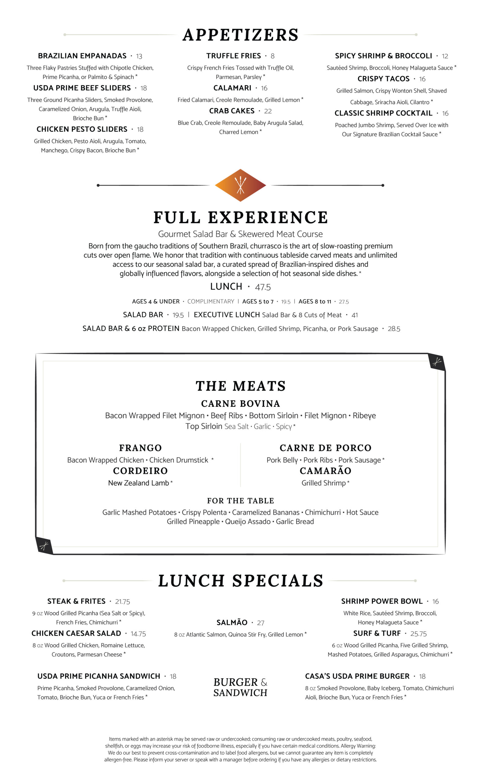 Served tableside by our Gaucho Chef's, indulge in USDA-Prime Aged beef, chicken, lamb, pork, and shrimp.